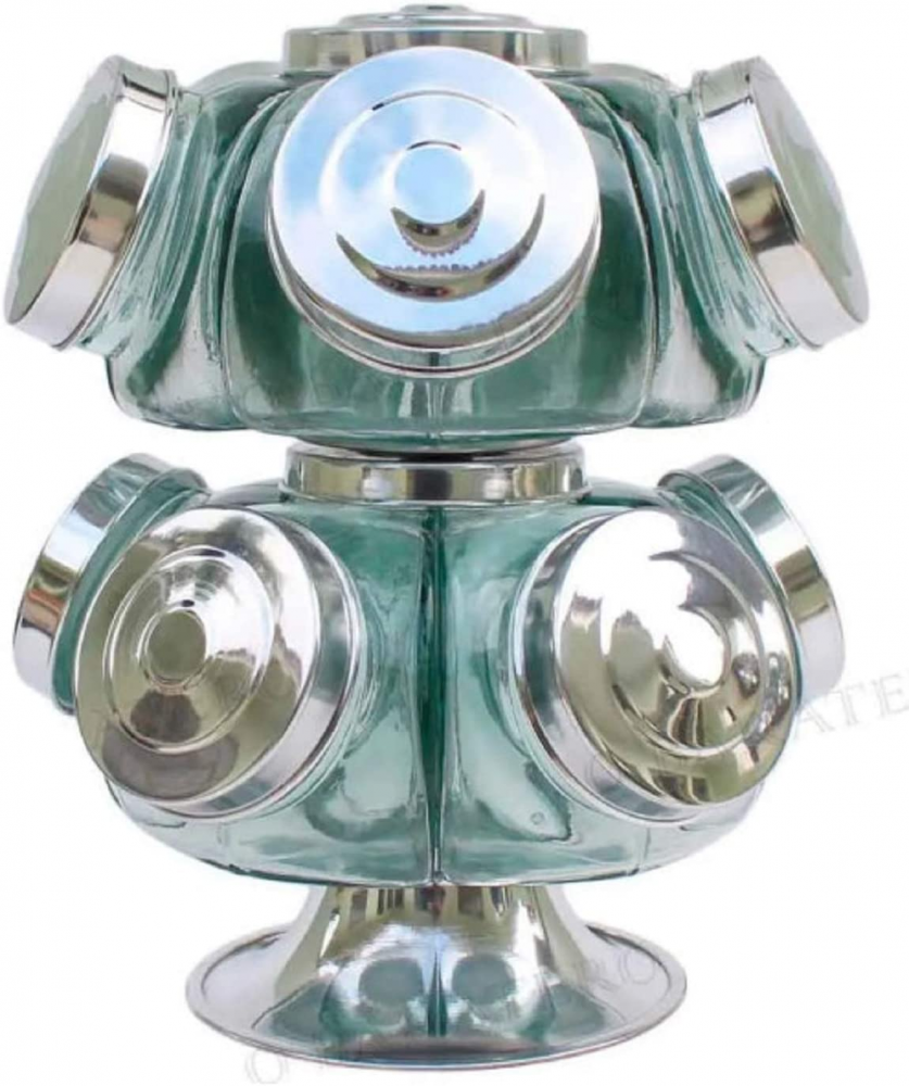 Baleiro Giratório Vidro Duplo 28 Cm 10 Potes Bomboniere Balas Biscoitos Cápsulas Café